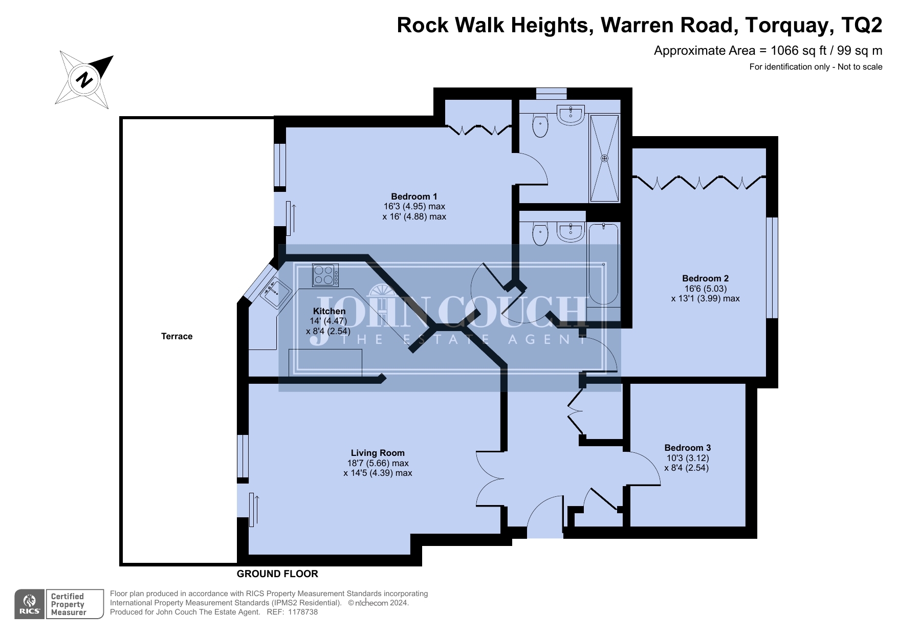 With uninterrupted bay views and a fabulous full width terrace, the apartment forms part of a purpose built development, ideally placed for the beach, the sea front promenade and for Torre Abbey Meadows. The apartment is situated at entrance level, with lift access to the secure communal parking area situated beneath the building, where the apartment benefits from two allocated spaces. The accommodation has a sitting/dining room opening to the sunny south/west facing terrace, kitchen, 3 bedrooms, an en-suite bathroom and a family bathroom. Private communal gardens with gated access to Rock Walk.