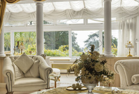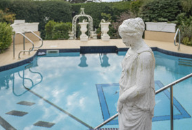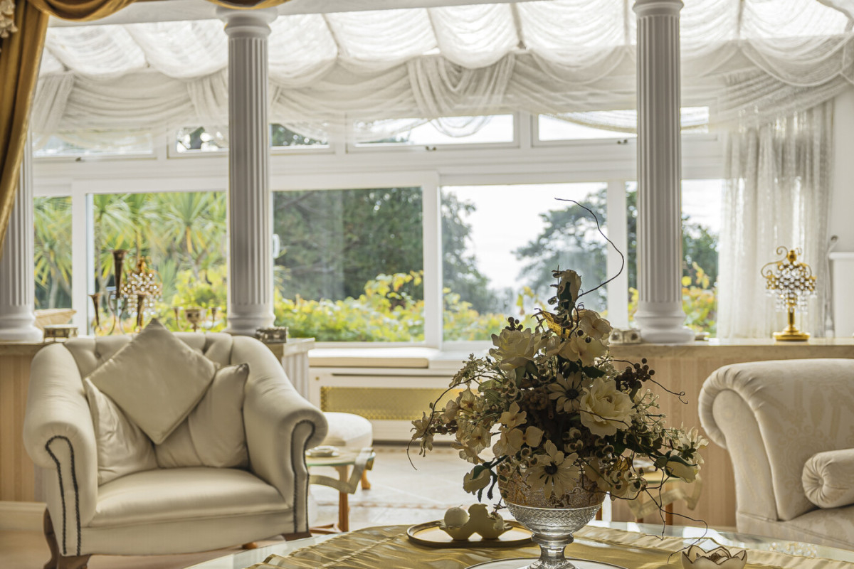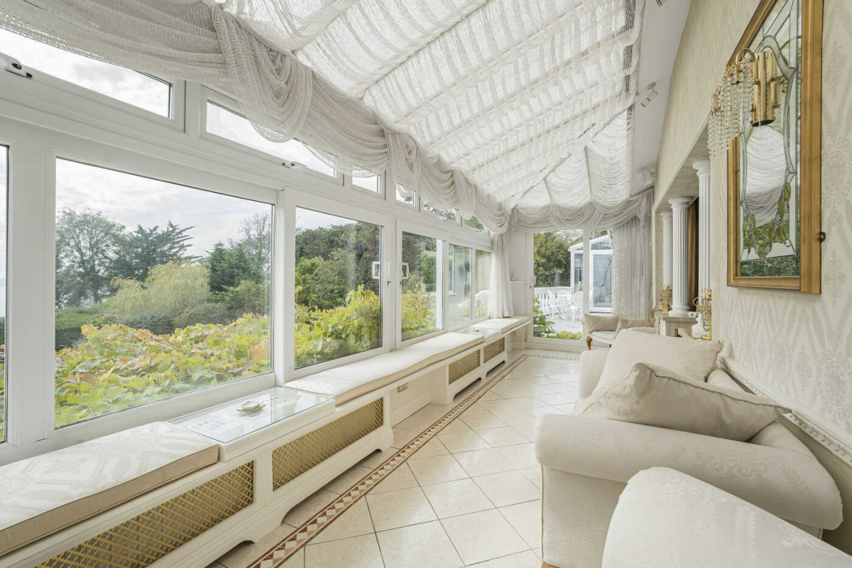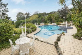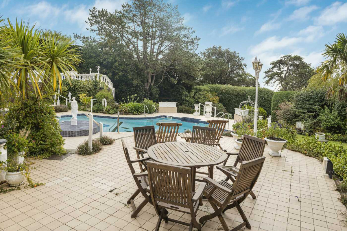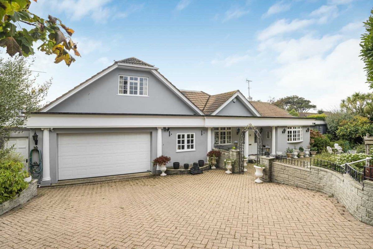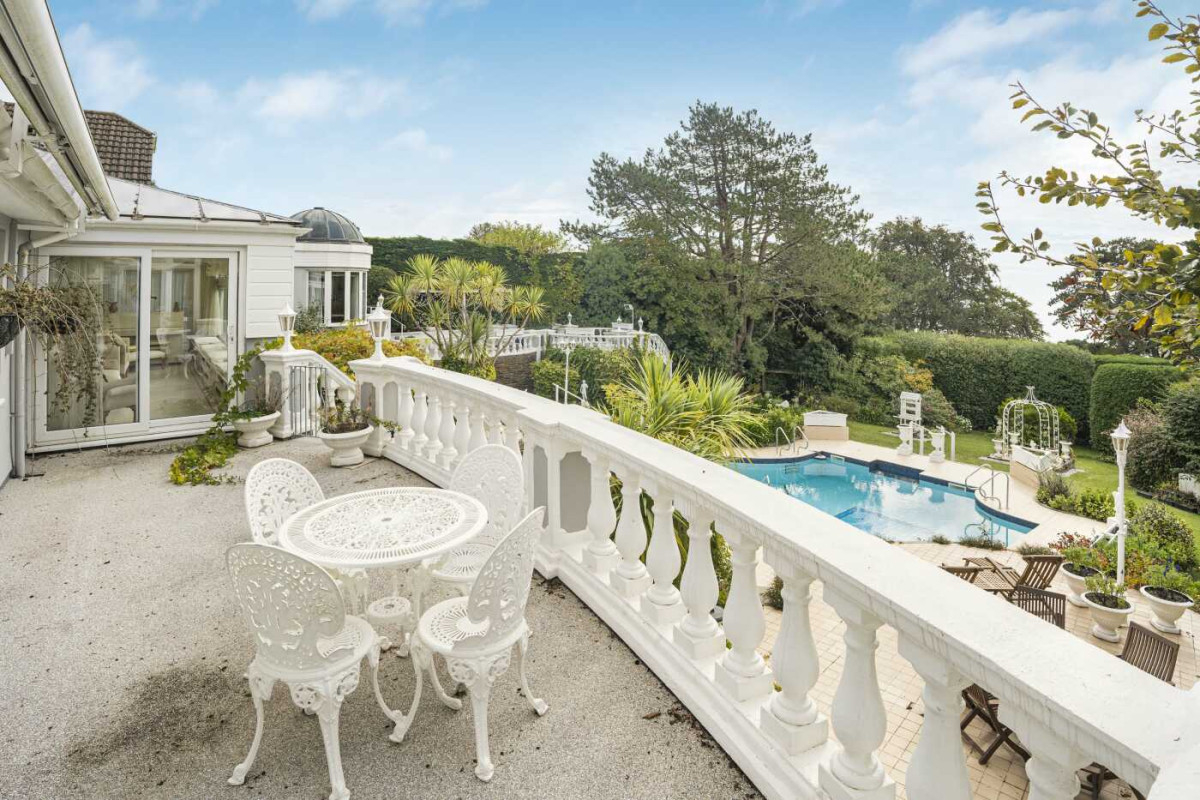 Occupying one of the finest and most discreet plots in this distinguished location, the gardens offer a wonderful sense of privacy and unexpected tranquillity, with a swimming pool and multiple terraces for enjoyment of sea views and sunny days. The accommodation unfolds over two levels in excess of 5000 sq ft, which although well maintained and upgraded over the years would now benefit from further updating and re-configuration to provide a unique and secluded coastal home. It principally sits over one level, with two bedrooms and a bathroom to the first floor. Extensive cellarage and storage is found at garden level, with a double garage and driveway parking to the front of the house.