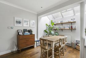 Perfectly located ground floor apartment, its accommodation extending to an enclosed and sheltered private courtyard offering outdoor dining and living space, with two bedrooms, an open reception/kitchen and spacious bathroom. It is presented with style and tasteful designer touches with enhanced period features, its versatile space currently arranged with bedroom two providing a formal sitting room. The beautiful courtyard gardens have a raised border planted with olive trees, built in seating and feature lighting. Within 0.19 mile of rail link (Imperial Wharf), the Thames Path, schooling, shops, waterside bars and restaurants.