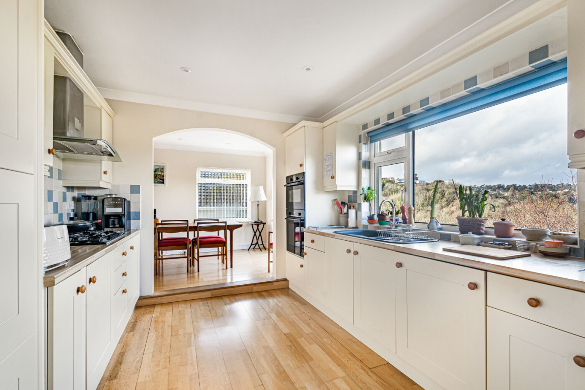 A cherished and long standing family home, combining privacy, position, outlook and lifestyle, offering a compelling home in a sought after residential location with far reaching views across Ilsham Valley. It offers the discerning purchaser a unique opportunity to update and personalise, unlocking its full potential. Arranged over two well proportioned levels, in a thoughtfully considered reverse level layout, the accommodation has a living room, kitchen/dining room, cloakroom, 3 bedrooms, bedroom 4/study, en-suite, family bathroom and utility. Established gardens, garage/workshop.