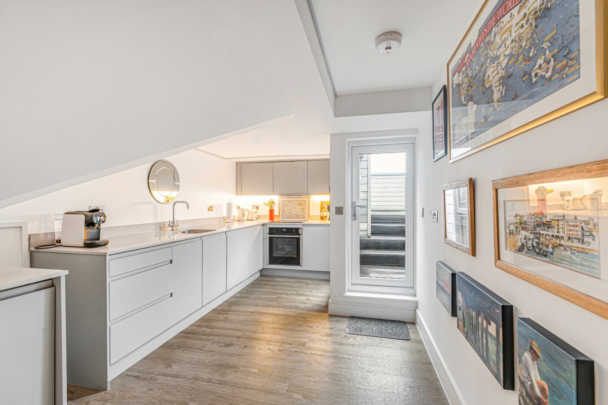 A bijou penthouse apartment, set within a sensitively renovated Victorian house, providing a rare seaside retreat, where intelligent design meets understated luxury. Intimate in scale, yet rich in detail and outlook, the accommodation has been meticulously configured to deliver comfort and exceptional functionality. At its heart lies the light filled living space with cleverly defined areas for relaxation and dining, flowing into the kitchen and continuing to a roof top terrace capturing sea and coastal views. The bedroom has an en-suite shower room, there is a separate cloakroom. Allocated parking with EV charging point, communal gardens.