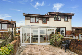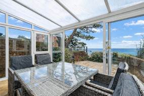 With exceptional elevated views, the property forms part of a well respected development, situated at the end of a small terrace, with well-balanced and practical living space. The accommodation is arranged over two floors and is ideal for both every day living and entertaining. A welcoming entrance hall leads to a well proportioned kitchen, with a cloakroom accessed from the hallway. The living space opens seamlessly into a conservatory, designed to draw the eye directly to the views, opening to the private sea facing terrace. There are two double bedrooms, each with en-suite facilities. Courtyard garden to the front and side, garage in separate block.