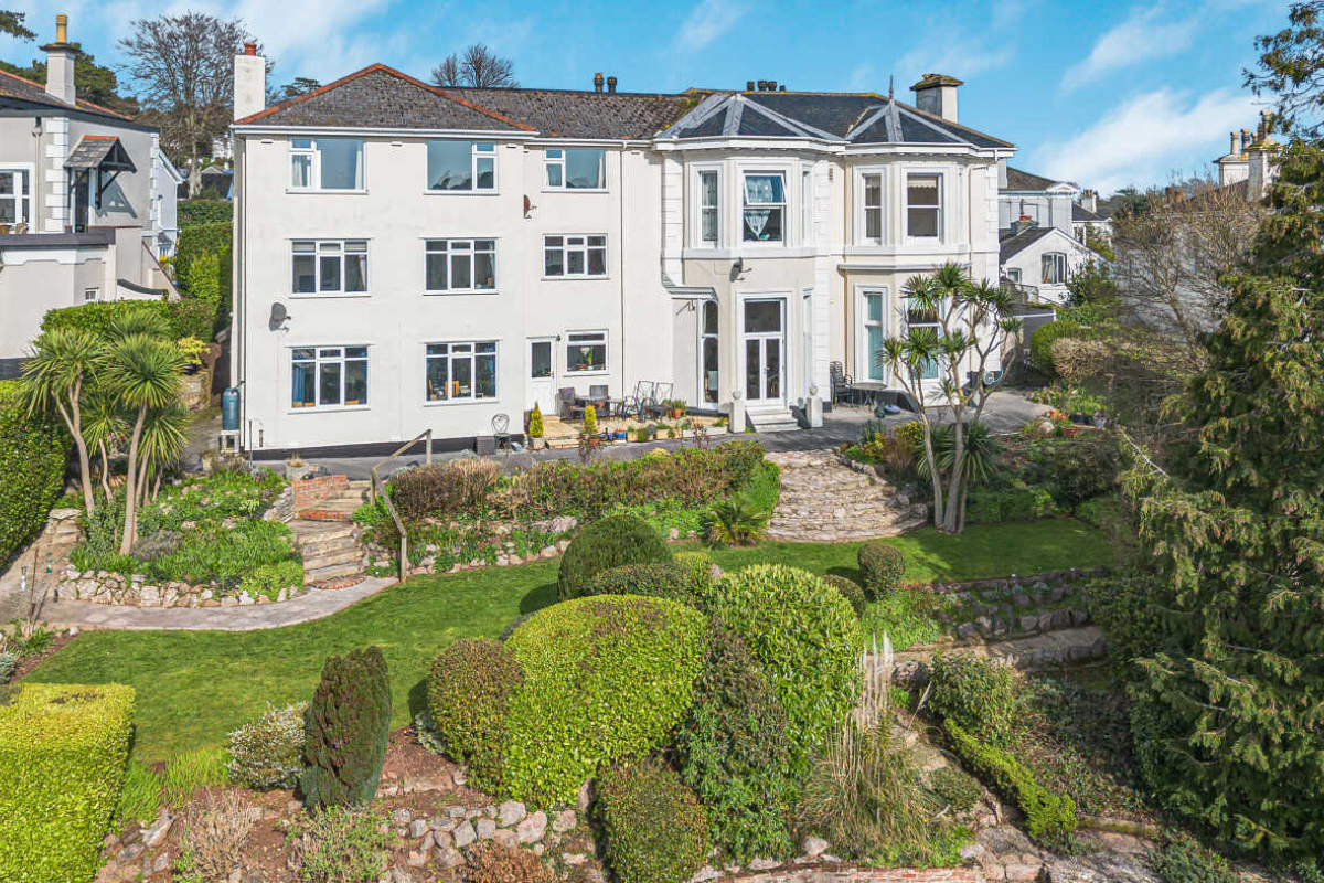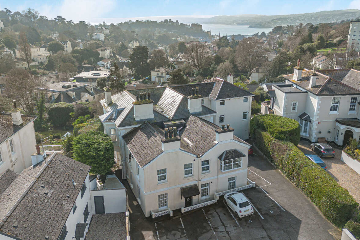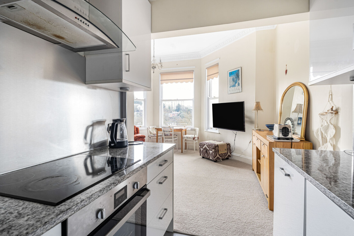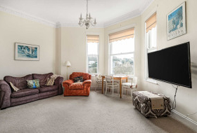 With light, character and distant views to the sea, the property offers a first floor flat, set within a distinguished Victorian villa, combining history with modern comfort. Ideal for full time living or as a second home, the apartment is accessed by a graceful staircase where the accommodation marries period charm with contemporary style. With a large bay window the open plan living area has a fine aspect over the gardens and the surrounding area to the sea, the principal bedroom, also with a bay window, is fitted with storage cupboards, continuing with bedroom two and a separate shower room. Mature gardens for the residents enjoyment, allocated parking space.