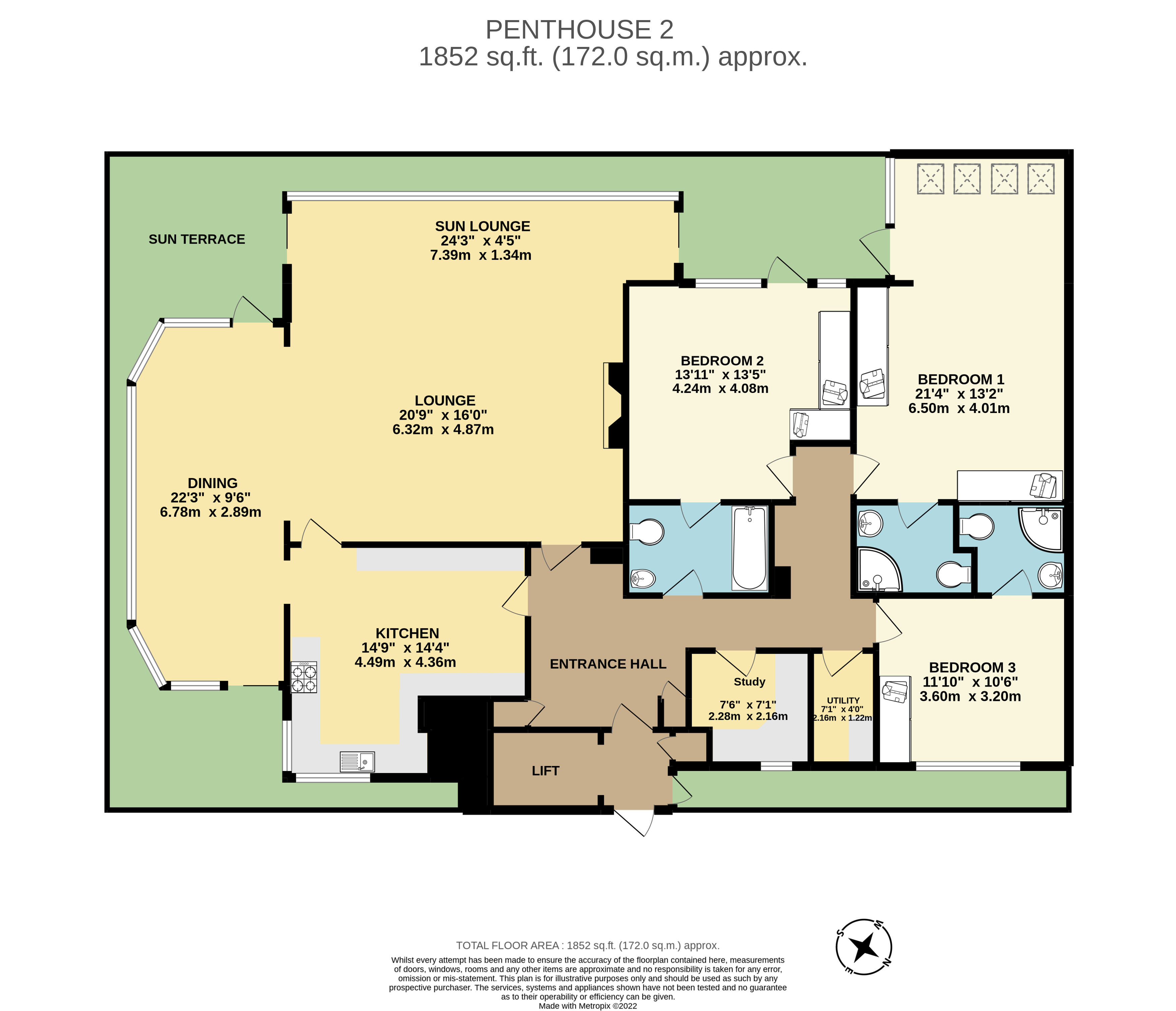 The penthouse offers a dazzling and spacious home, finished to an exacting standard with unique features, enjoying spectacular coastal views, its exciting design guaranteed to impress. The principal rooms take full advantage of the ever changing aspect of Tor Bay, tracking the rising sun to the east, to the setting sun of the west. The accommodation has a living space with two seating/living zones opening to a terrace, a superb kitchen, utility, study, 3 bedrooms each with en-suite bathrooms. 2 external parking spaces.