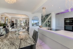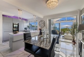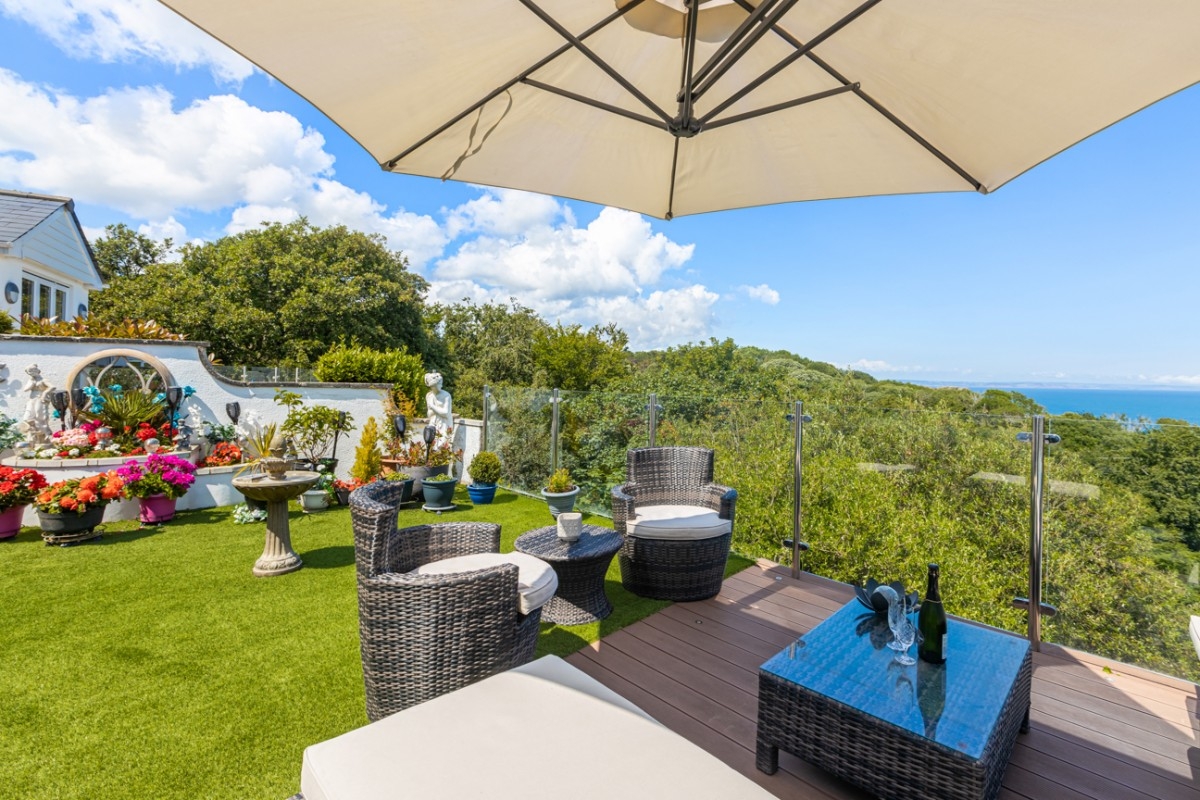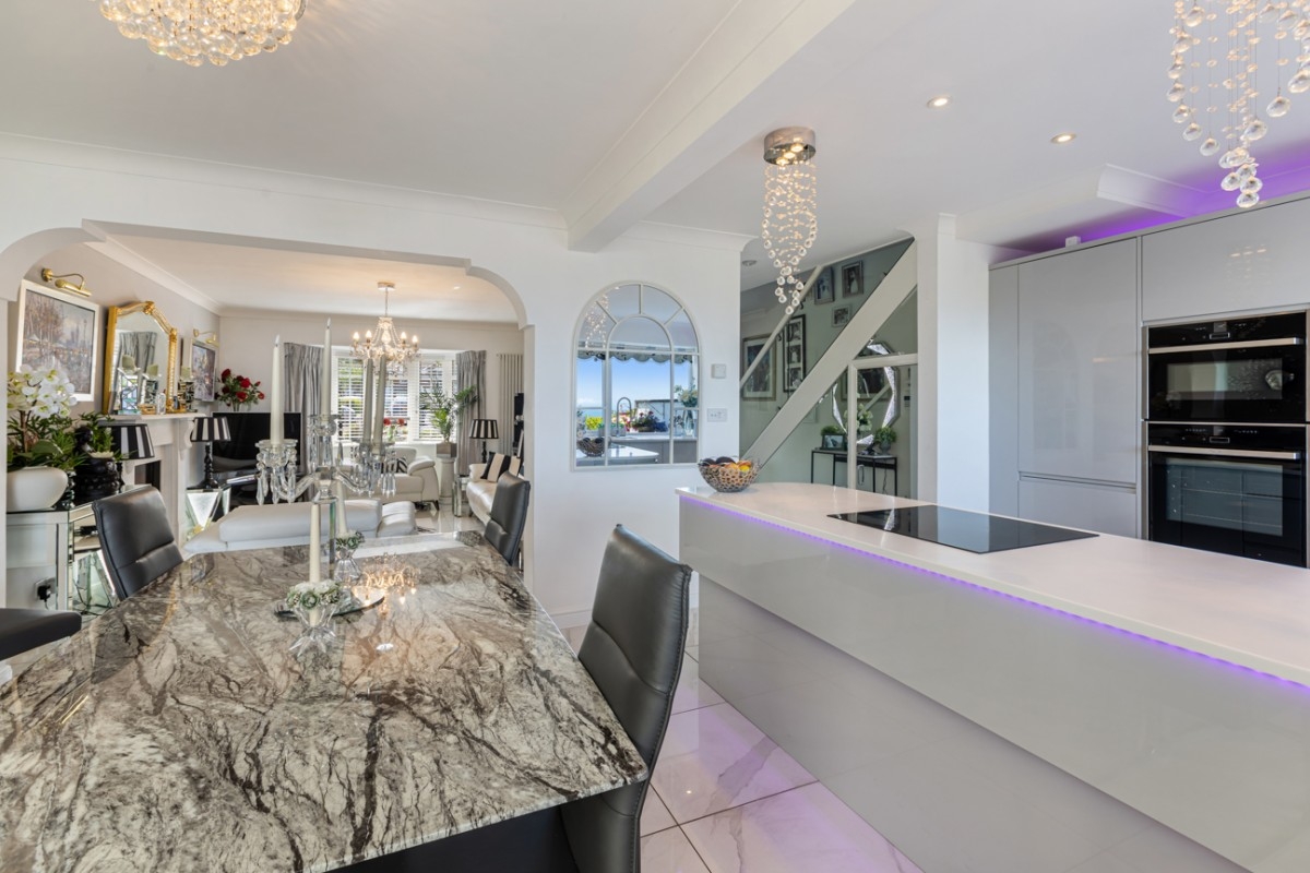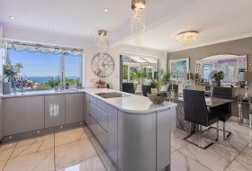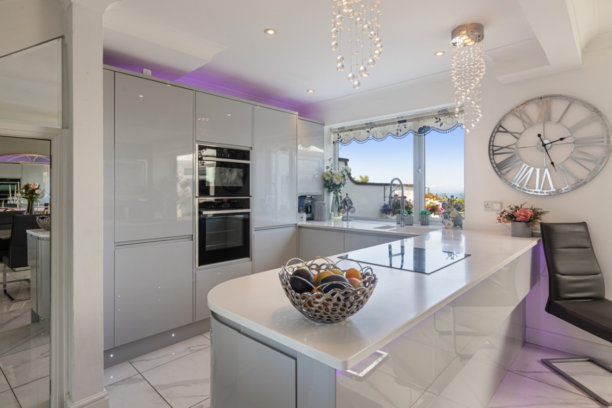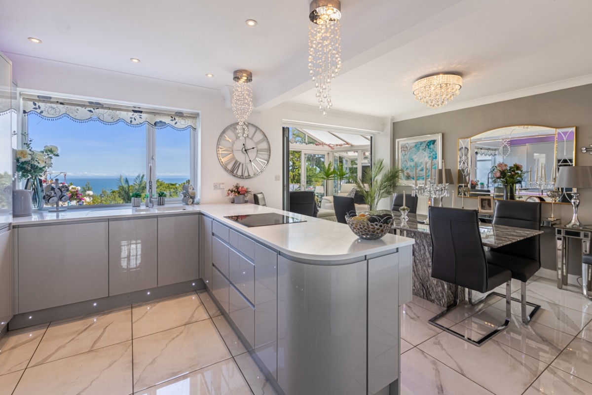 With stunning views of Lyme Bay, the property offers an immaculately presented seaside home, extended and re-furbished, maximising enjoyment of its fabulous coastal views, making it a perfect property for the purchaser seeking a glamorous home offering a laid back coastal lifestyle. It enjoys a quiet cul-de-sac location, perfectly located for Wellswood, sought after for its ambient lifestyle and proximity to beaches. The accommodation is arranged over two floors, the ground floor open plan but with the option to separate the living room from the kitchen and dining room, conservatory, three bedrooms, en-suite and bathroom. Easy gardens, single garage and parking.