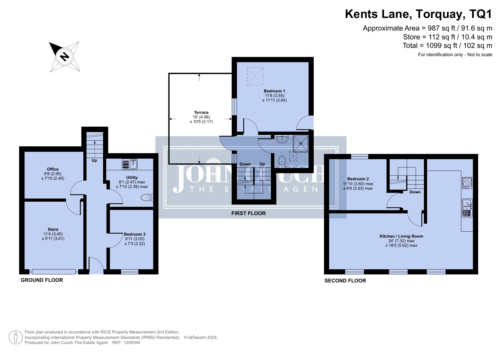 With excellent living space, the property offers an individual mews style home, located in the very heart of Wellswood, with shops and restaurants on the doorstep and with public transport within walking distance. Deceptively spacious, the accommodation is arranged over three floors, at entrance level is bedroom 3, a large utilitly/WC, office and store (converted from the garaging which could be re-instated), stairs rise to the mezzanine first floor with the principal bedroom and shower room, continuing to the second floor and an open plan kitchen/living room and the second bedroom. Private terrace.