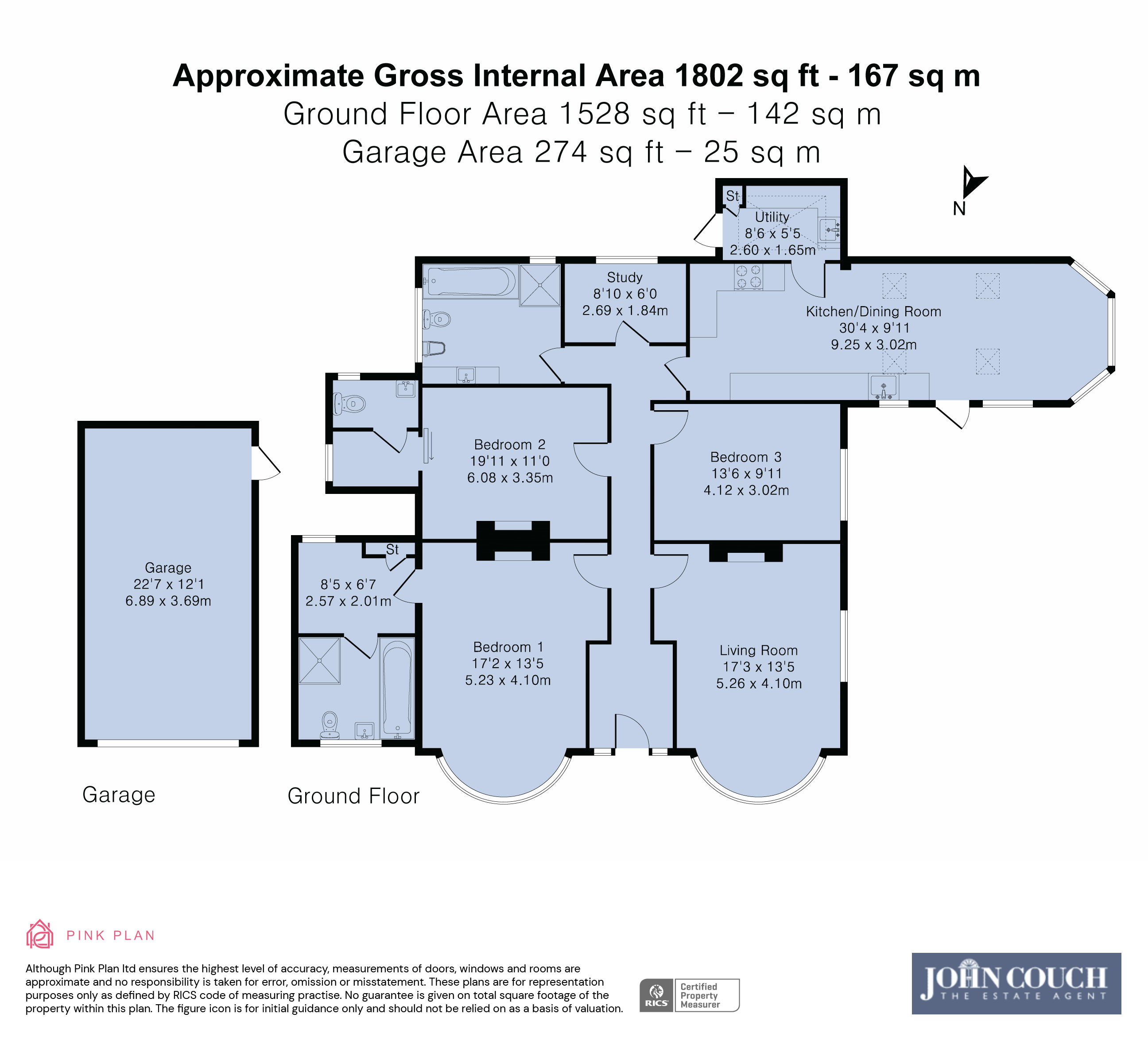 A traditional double-fronted single storey home, of circa 1930's build, extended over the intervening years to provide spacious accommodation retaining much of its original character. It offers potential for enhancement of its features and sits in private gardens that enjoy a good deal of sunshine throughout the day. It currently offers a sitting room, kitchen/dining room, utility, 3 bedrooms, a dressing room, en-suite bathroom, en-suite cloakroom and family bathroom. There is also a small store/study giving additional space. Detached garage, driveway parking.