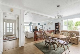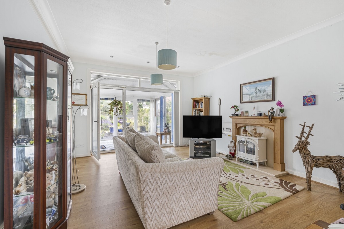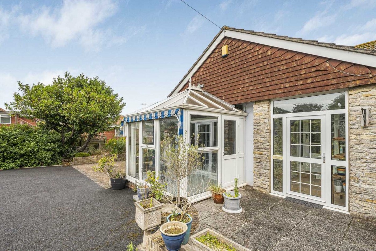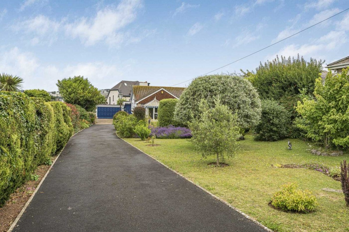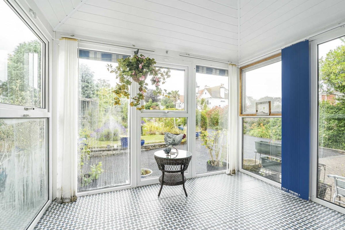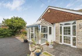 With bright light filled living space, the property sits just off the sea front promenade, its accommodation unfolding over a single level and set within beautiful private gardens with a gated driveway and garage parking. Presented in calming neutral tones, updated and adapted for easy living, the sitting/dining room is open plan but with distinct areas for both dining and seating, continuing to the garden room, the kitchen looks to the rear garden with a utility room adjacent, there are three double bedrooms and two contemporary shower rooms. The mature well planted gardens are level and offer space for parking, leading to the double garage.