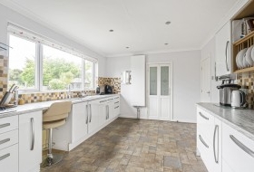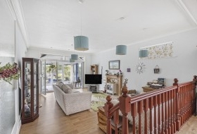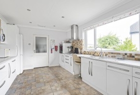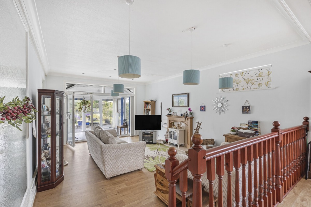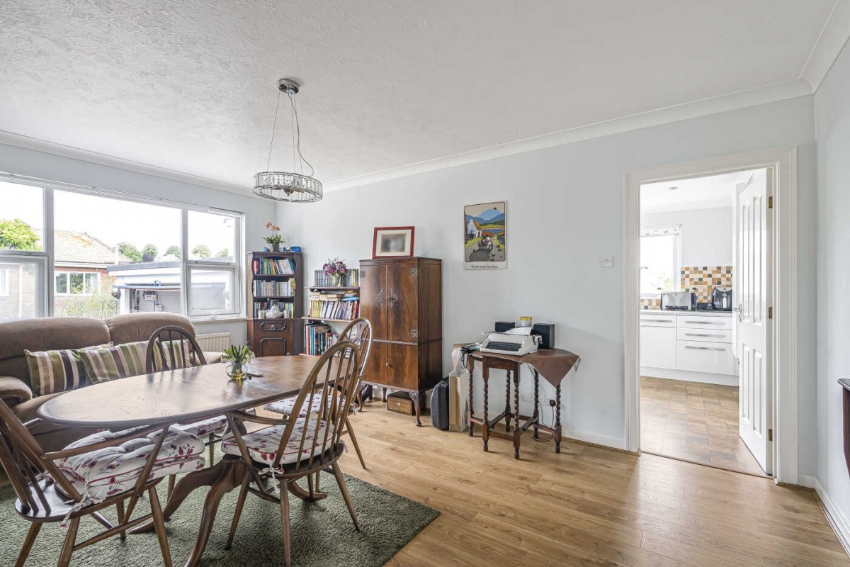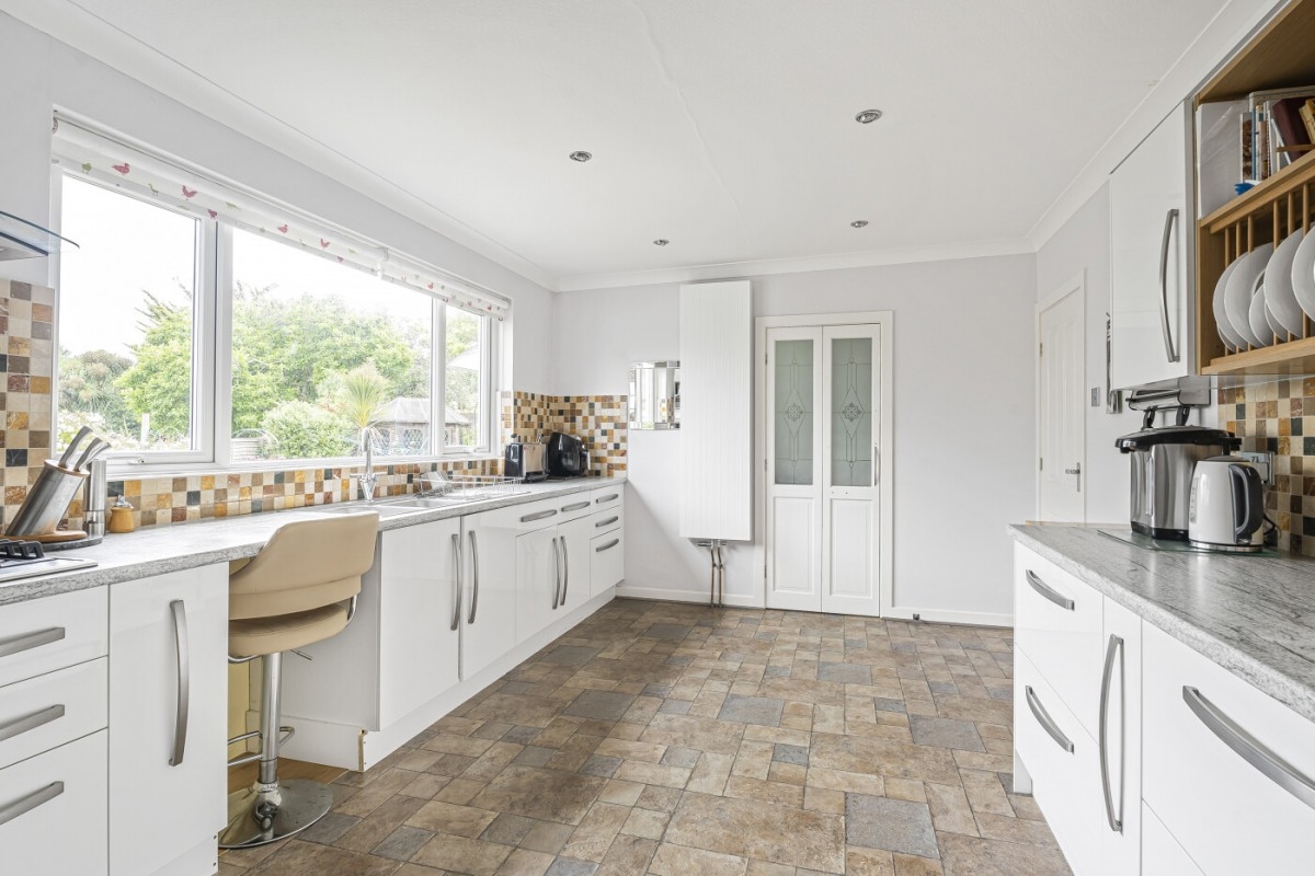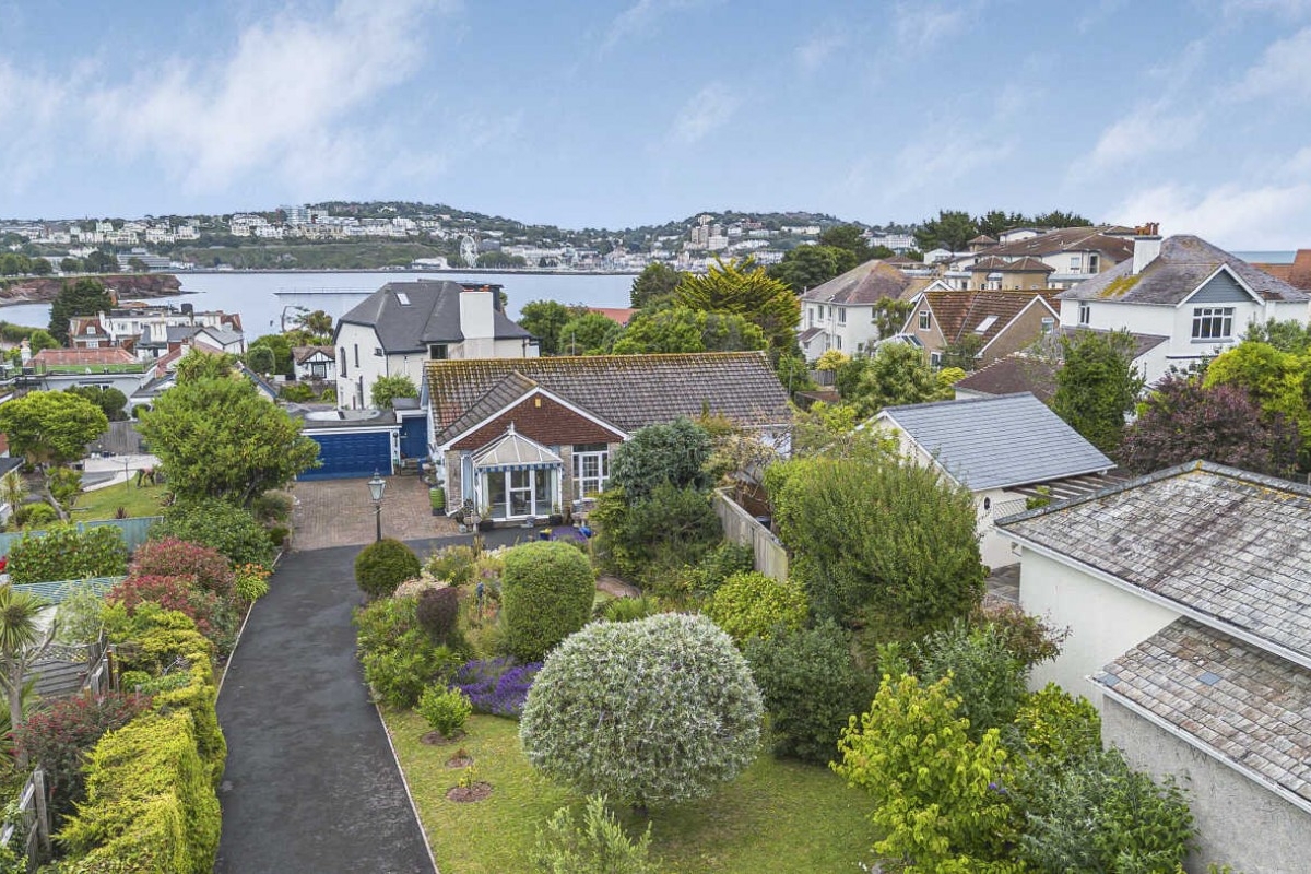 With bright light filled living space, the property sits just off the sea front promenade, its accommodation unfolding over a single level and set within beautiful private gardens with a gated driveway and garage parking. Presented in calming neutral tones, updated and adapted for easy living, the sitting/dining room is open plan but with distinct areas for both dining and seating, continuing to the garden room, the kitchen looks to the rear garden with a utility room adjacent, there are three double bedrooms and two contemporary shower rooms. The mature well planted gardens are level and offer space for parking, leading to the double garage.