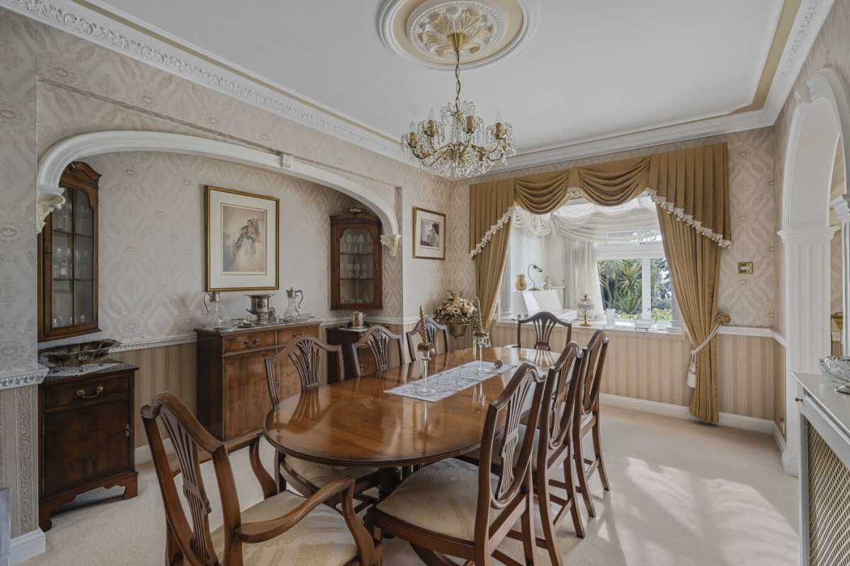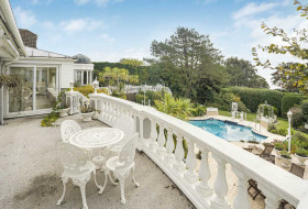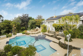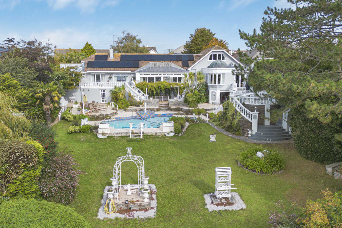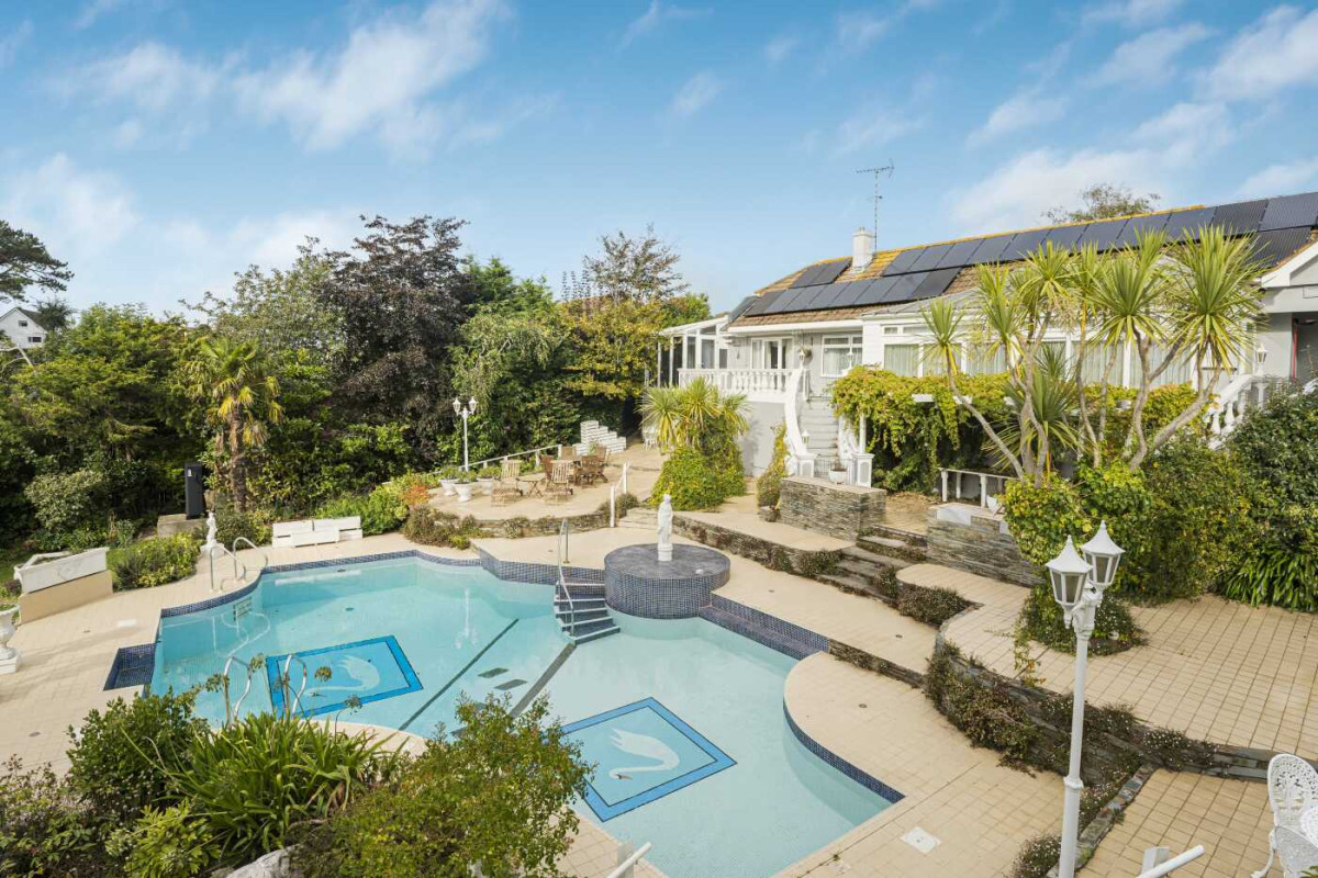 Occupying one of the finest and most discreet plots in this distinguished location, the gardens offer a wonderful sense of privacy and unexpected tranquillity, with a swimming pool and multiple terraces for enjoyment of sea views and sunny days. The accommodation unfolds over two levels in excess of 5000 sq ft, which although well maintained and upgraded over the years would now benefit from further updating and re-configuration to provide a unique and secluded coastal home. It principally sits over one level, with two bedrooms and a bathroom to the first floor. Extensive cellarage and storage is found at garden level, with a double garage and driveway parking to the front of the house.