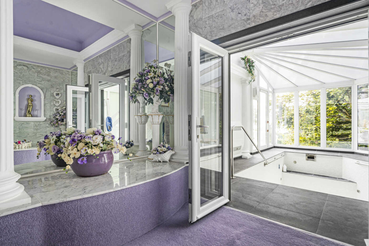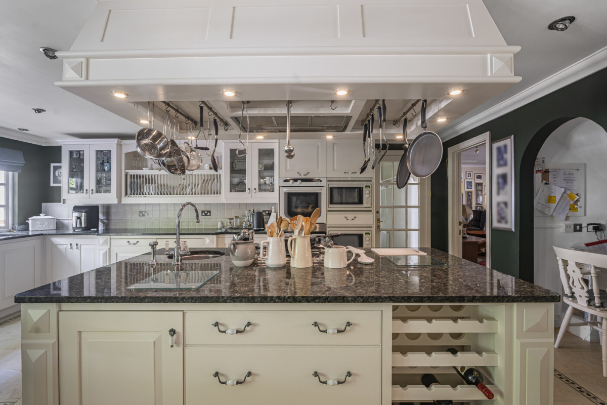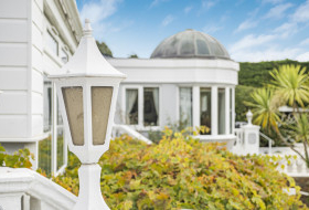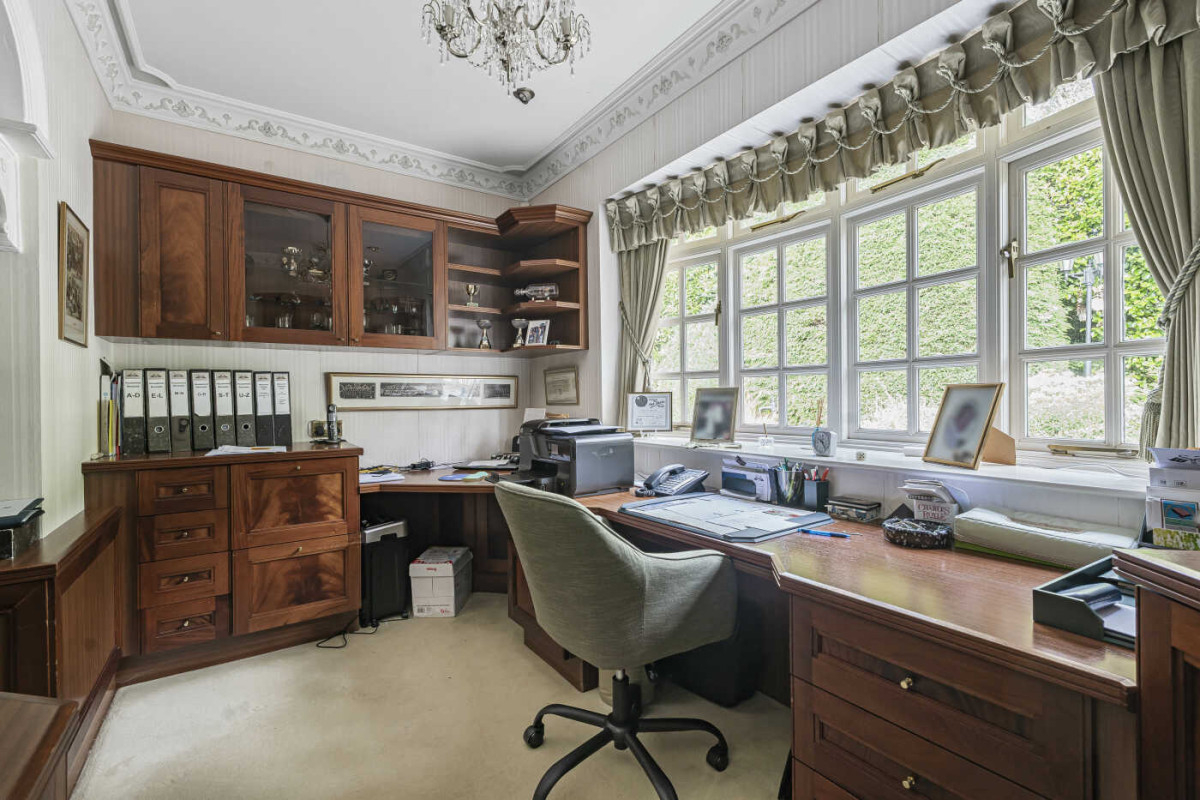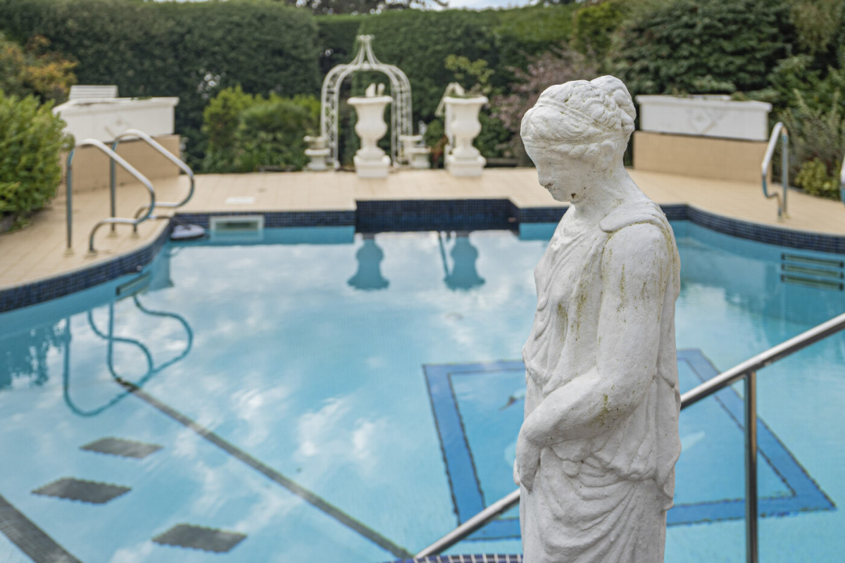 Occupying one of the finest and most discreet plots in this distinguished location, the gardens offer a wonderful sense of privacy and unexpected tranquillity, with a swimming pool and multiple terraces for enjoyment of sea views and sunny days. The accommodation unfolds over two levels in excess of 5000 sq ft, which although well maintained and upgraded over the years would now benefit from further updating and re-configuration to provide a unique and secluded coastal home. It principally sits over one level, with two bedrooms and a bathroom to the first floor. Extensive cellarage and storage is found at garden level, with a double garage and driveway parking to the front of the house.