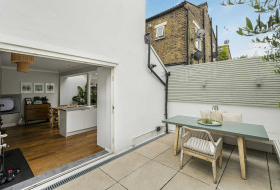Perfectly located ground floor apartment, its accommodation extending to an enclosed and sheltered private courtyard offering outdoor dining and living space, with two bedrooms, an open reception/kitchen and spacious bathroom. It is presented with style and tasteful designer touches with enhanced period features, its versatile space currently arranged with bedroom two providing a formal sitting room. The beautiful courtyard gardens have a raised border planted with olive trees, built in seating and feature lighting. Within 0.19 mile of rail link (Imperial Wharf), the Thames Path, schooling, shops, waterside bars and restaurants.