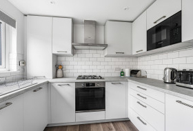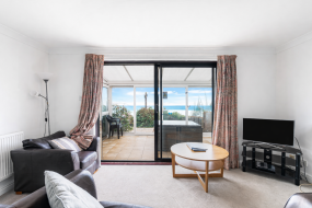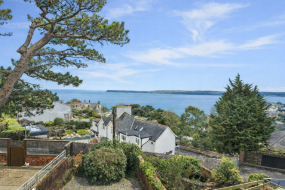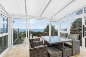 With exceptional elevated views, the property forms part of a well respected development, situated at the end of a small terrace, with well-balanced and practical living space. The accommodation is arranged over two floors and is ideal for both every day living and entertaining. A welcoming entrance hall leads to a well proportioned kitchen, with a cloakroom accessed from the hallway. The living space opens seamlessly into a conservatory, designed to draw the eye directly to the views, opening to the private sea facing terrace. There are two double bedrooms, each with en-suite facilities. Courtyard garden to the front and side, garage in separate block.
