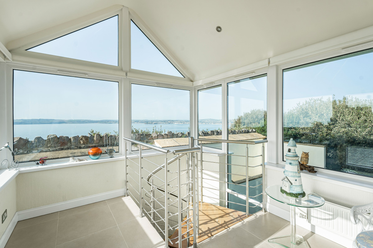 Dramatic coastal scenery, refined living and a highly sought-after lifestyle define this exceptional residence, with uninterrupted near 180-degree panoramic sea views, sitting above the South West Coast Path. Designed to maximise its breathtaking setting, the property is arranged over a reverse-level layout with lift access from the garage, positioning the principal living accommodation on the upper floor, with a well appointed kitchen/dining room, triple-aspect sitting room opening into a conservatory, oriented to capture the spectacular coastal outlook. The entrance level has four bedrooms, three bathrooms and a utility room, offering flexibility for family living. A generous sea-facing terrace provides space for entertaining or quiet enjoyment of the views, large garage, excellent parking.